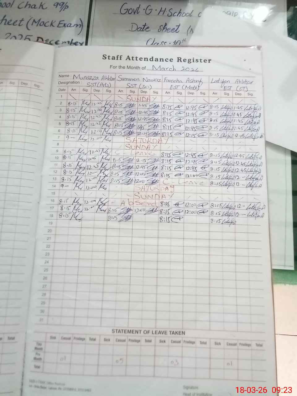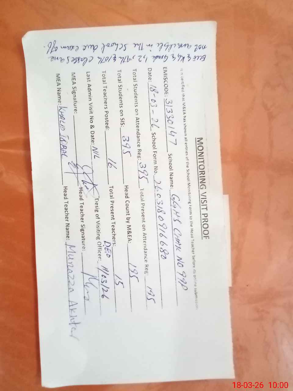 | Remarks (Use Separate Page if Required): ECCE and KG grade 1,2, and 9th and 10th classes are not available in the school due to exam off | |||||