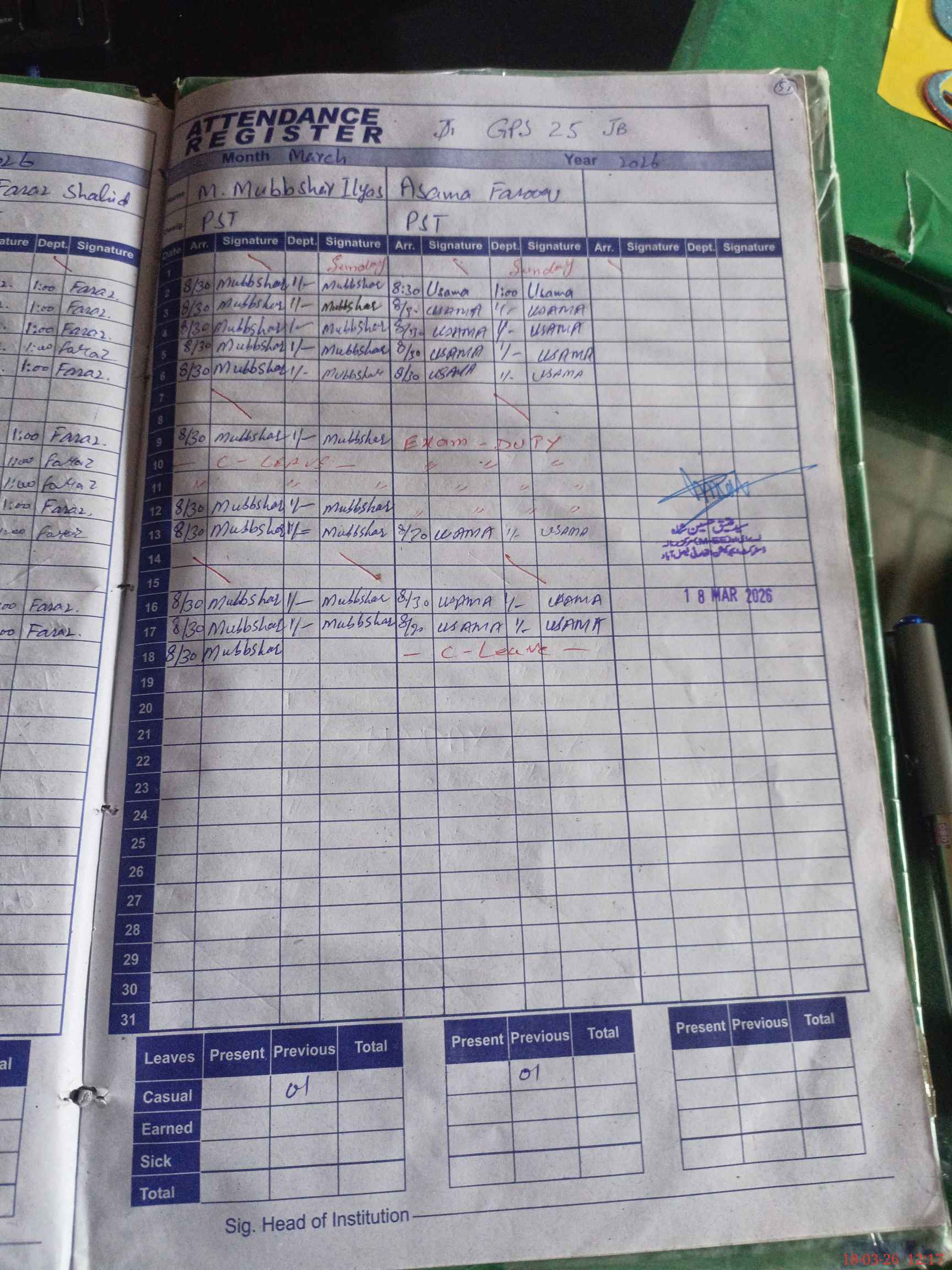 | Name: AB**** HU**** Designation: (School Headmaster's/Headmistress's) PST Phone/Cell Number: 03**** |