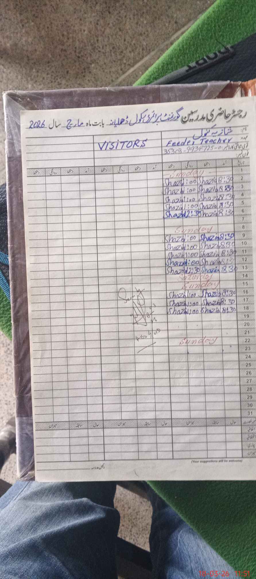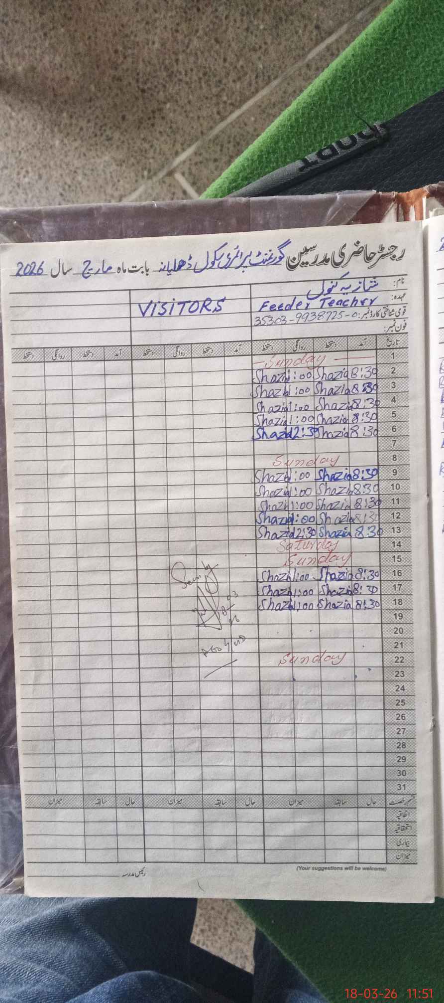 | Name: At**** Sa**** Ta**** Designation: (School Headmaster's/Headmistress's) PTC/JV Phone/Cell Number: 03**** |