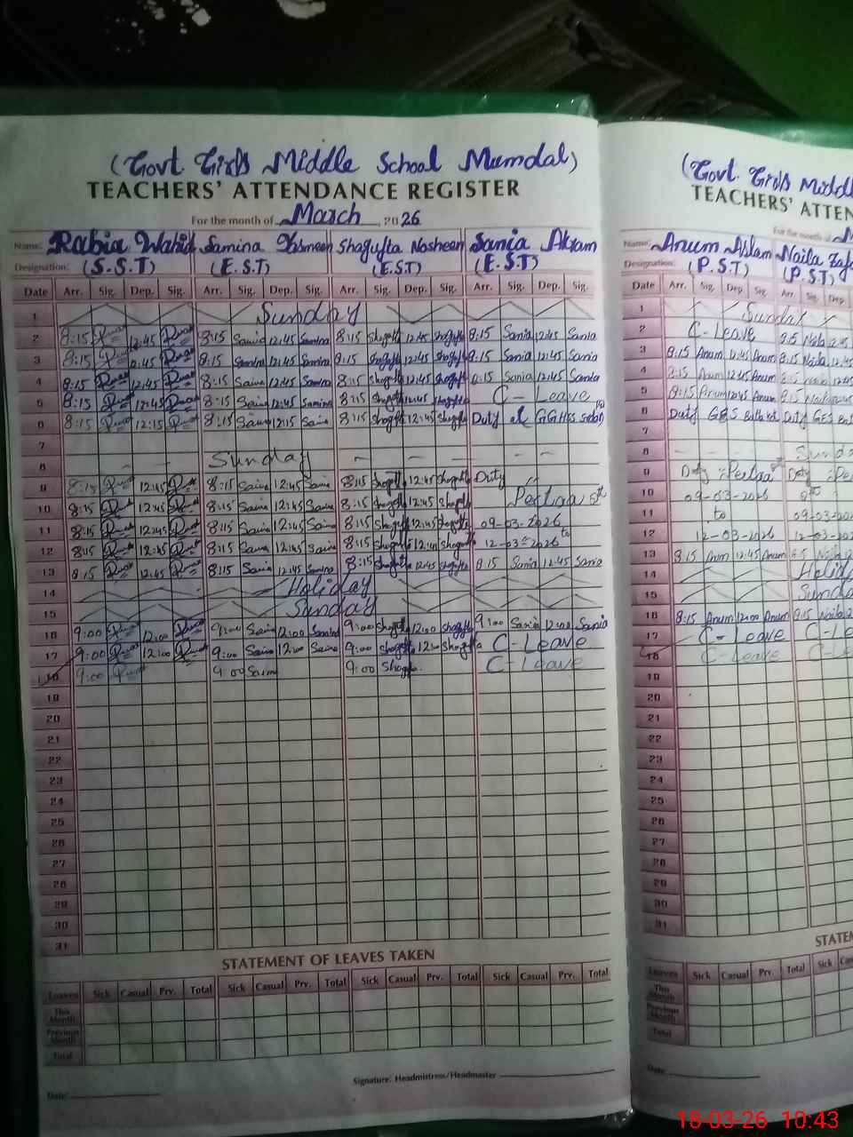 | 36**** | Na**** Za**** | PST Science/Maths | Regular | 0 | 0 | 0 | 0 | 0 | 0 | 0 | 0 | 0 | Casual |