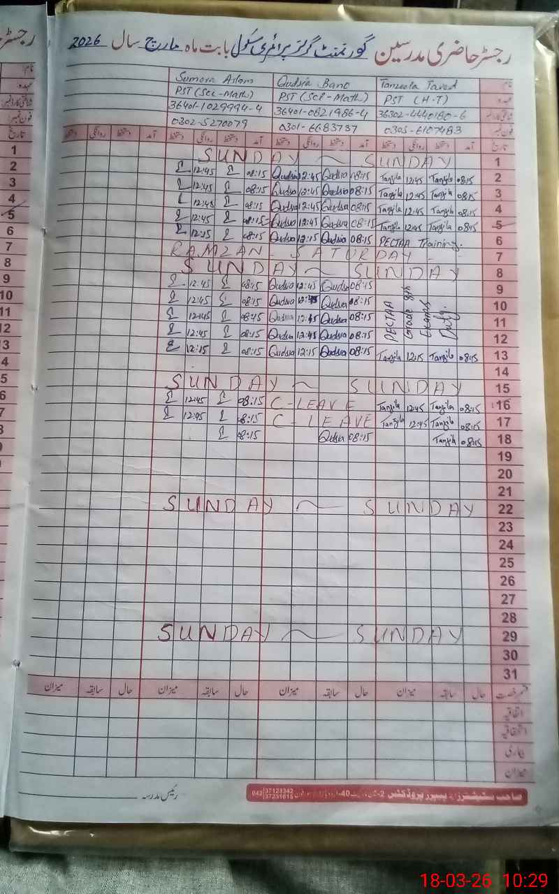 | Name: TA**** JA**** Designation: (School Headmaster's/Headmistress's) PST Phone/Cell Number: 03**** |