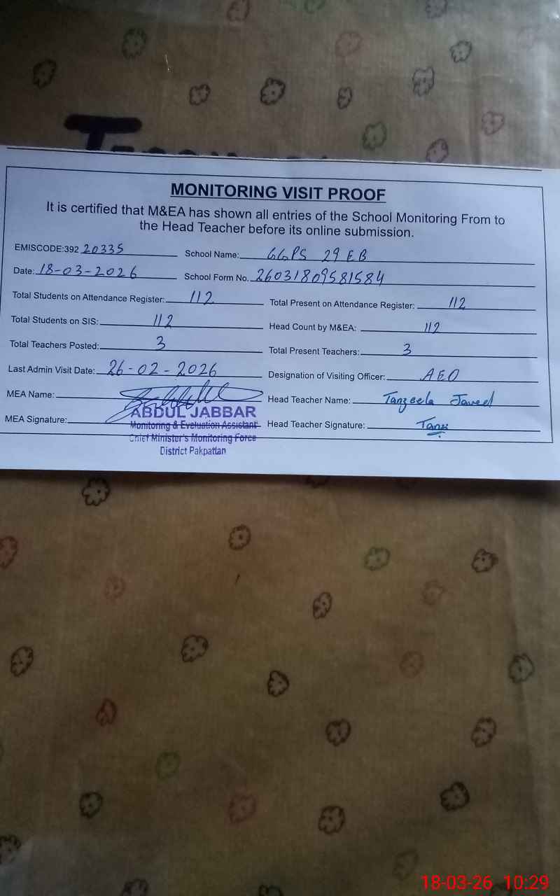 | Certified that this School was Inspected by the Undersigned MEA/DMO Today and the Information Stated Above is as Per Record. | |||||