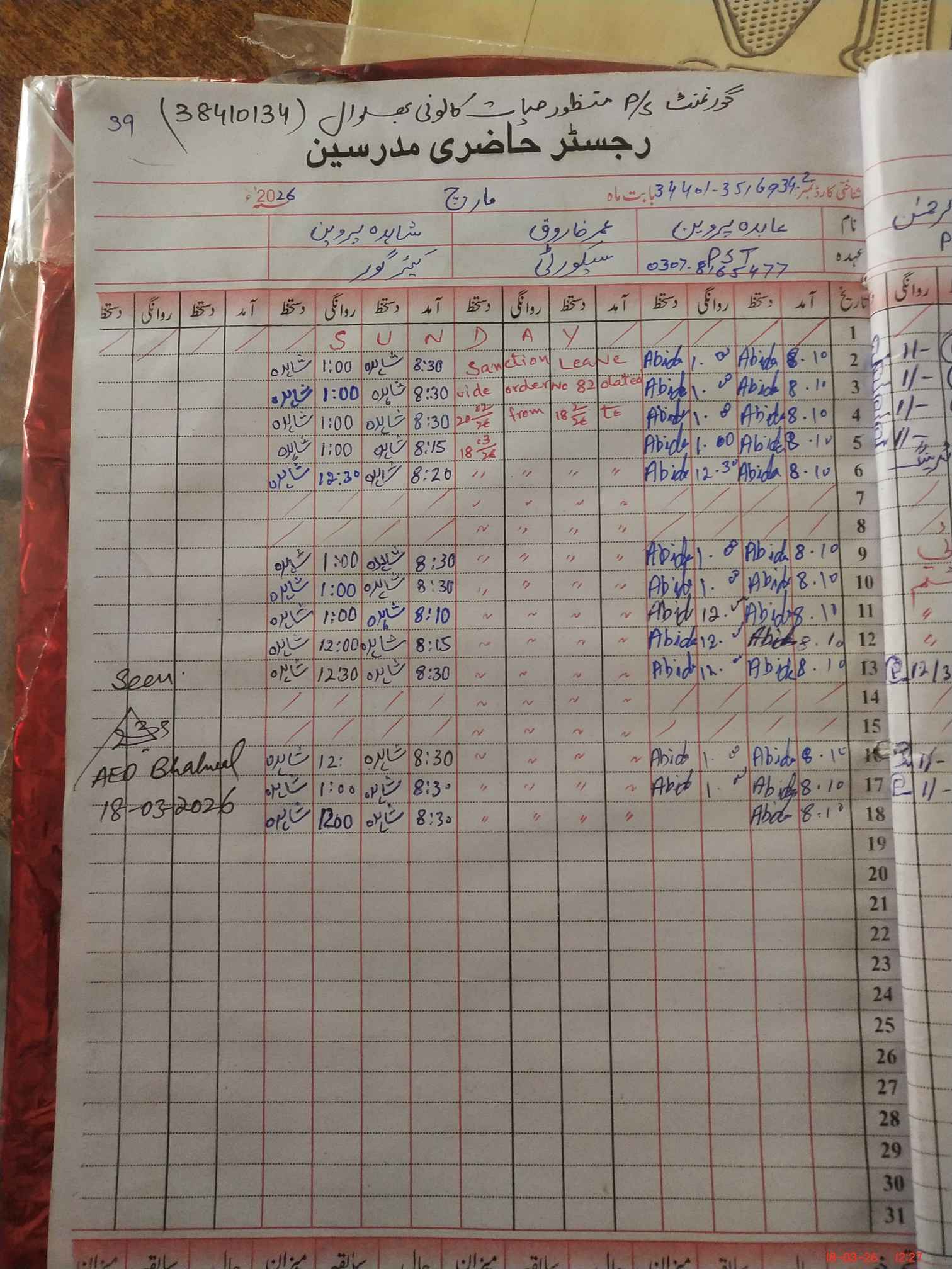 | EMIS Code: 38410134 | Name of School: GPS MANZOOR HAYAT COLONY BHALWAL | |||