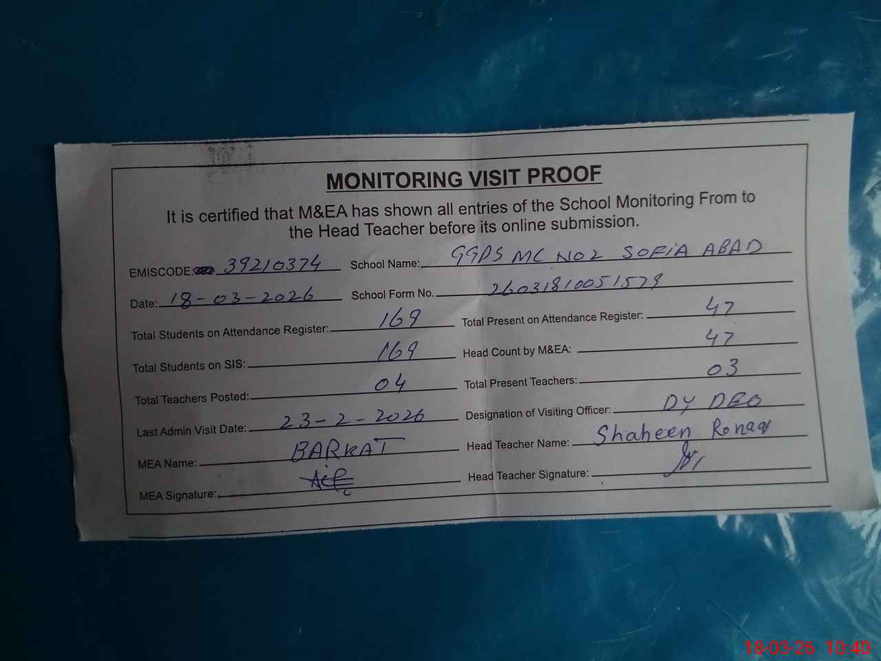 | EMIS Code: 39210374 | Name of School: GGPS MC NO. 2 SOFIA ABAD | |||
