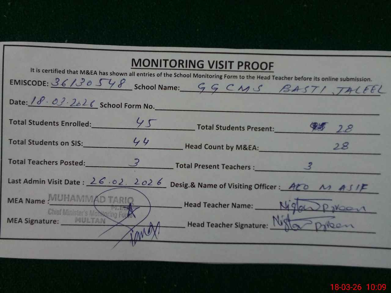 | EMIS Code: 36130548 | Name of School: GGCMS BASTI JALEEL | |||