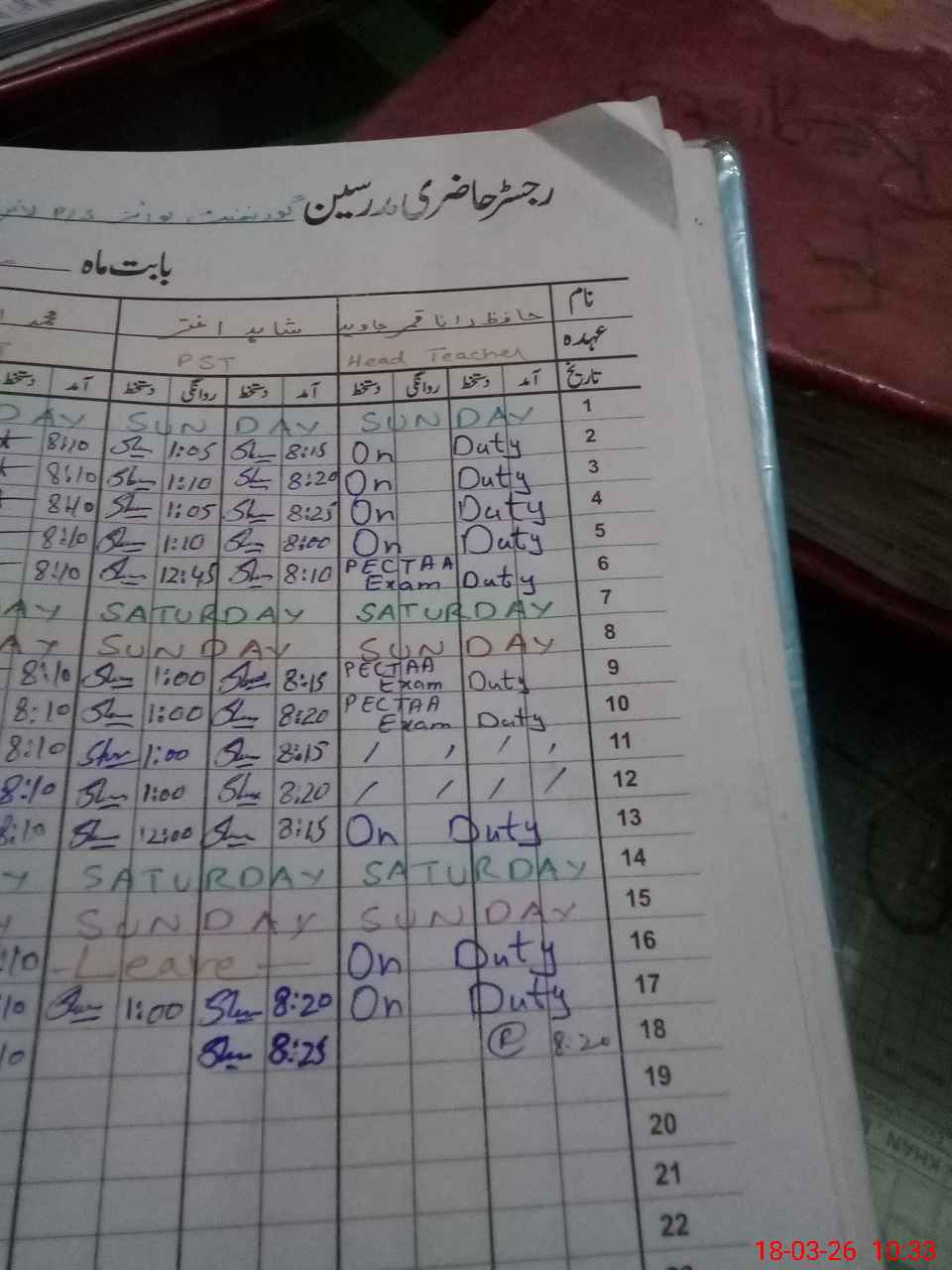| Leave | Duty | Absent | Maternity | Medical | Ex- Pak |