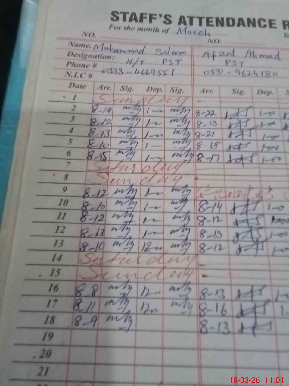 | Name: MU**** SA**** Designation: (School Headmaster's/Headmistress's) PST Phone/Cell Number: 03**** |