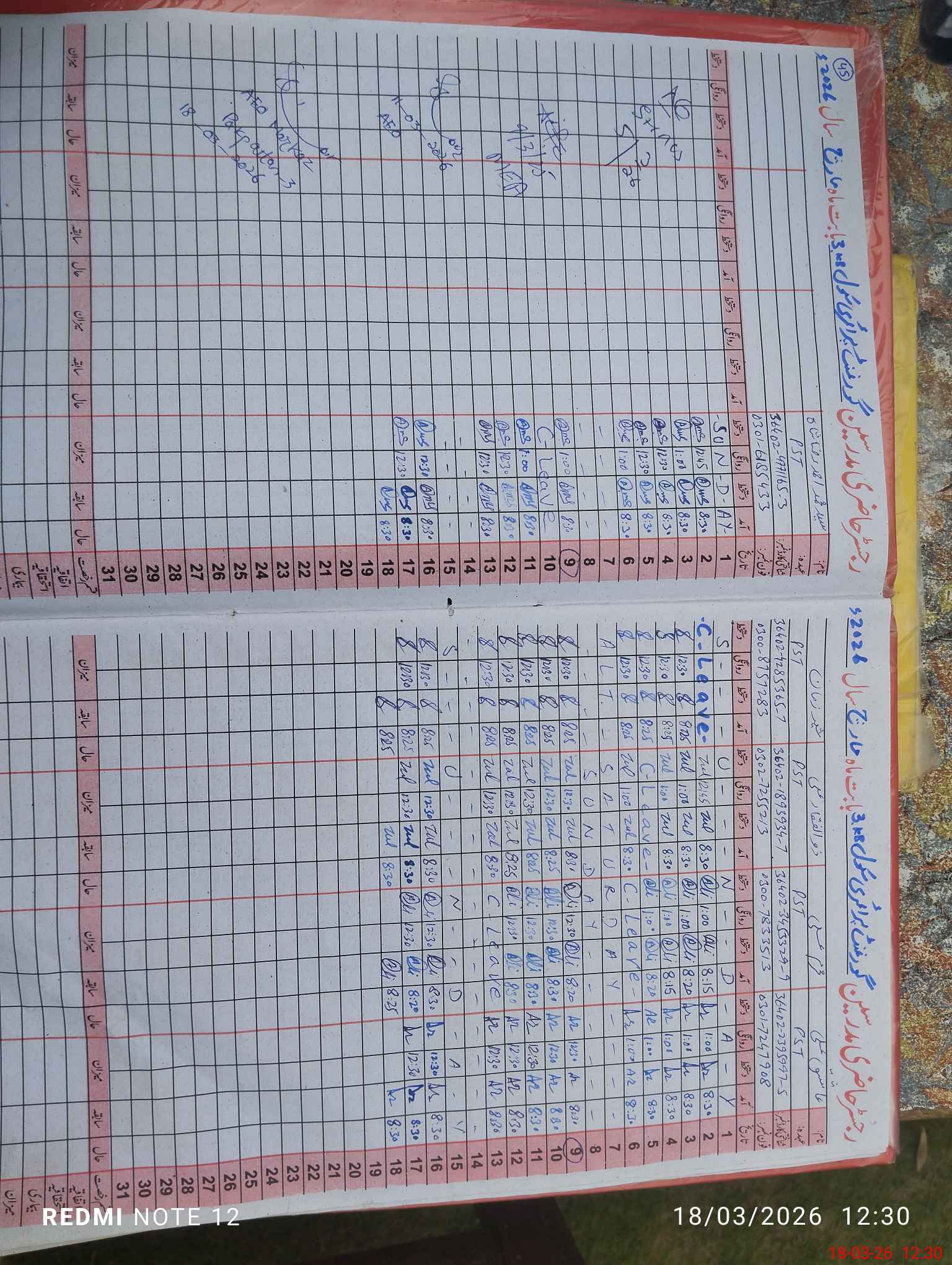| Leave | Duty | Absent | Maternity | Medical | Ex- Pak |