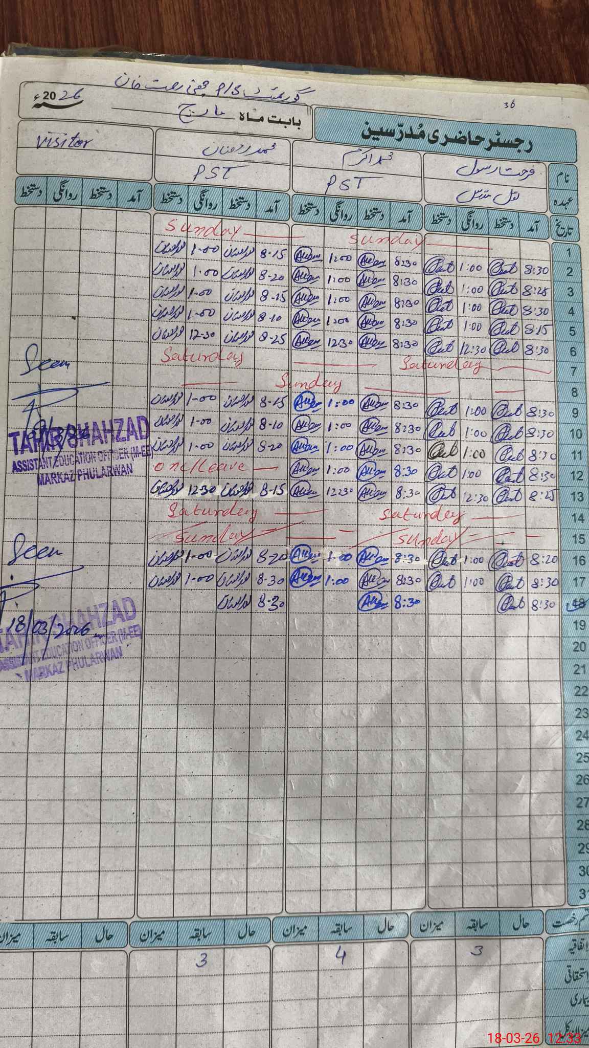 | Name: FA**** RA**** Designation: (School Headmaster's/Headmistress's) PST Phone/Cell Number: 03**** |