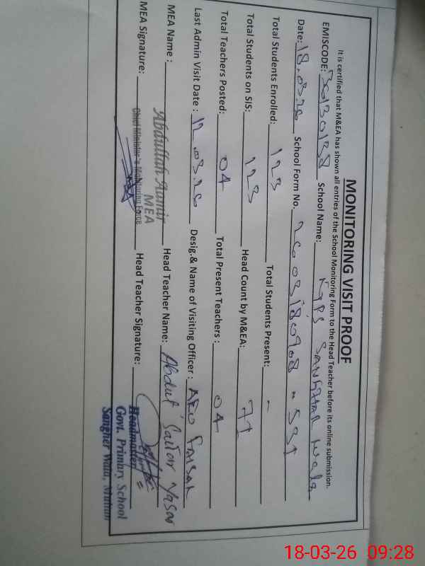 | EMIS Code: 36130138 | Name of School: GPS SANGHER WALA P/O SANGHER WALA | |||