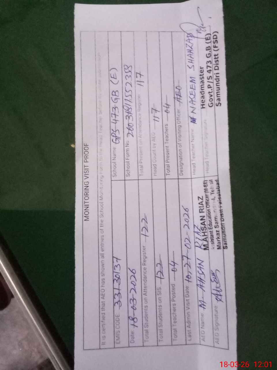 | EMIS Code: 33130137 | Name of School: GPS 473 GB E | |||