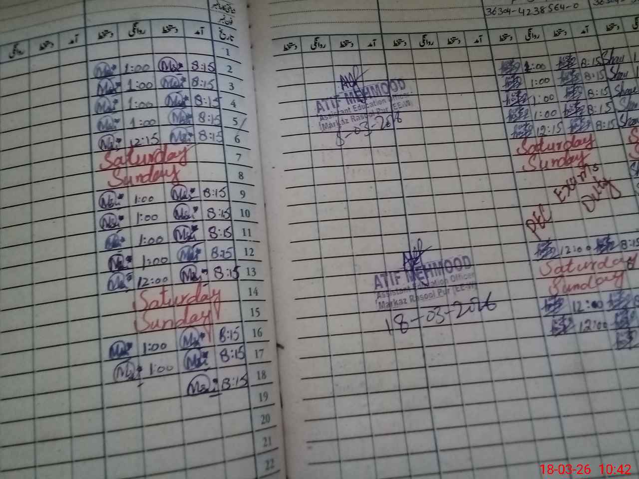 | CNIC | Full Name | Designation | R/C | Absence During Last Calender Month |