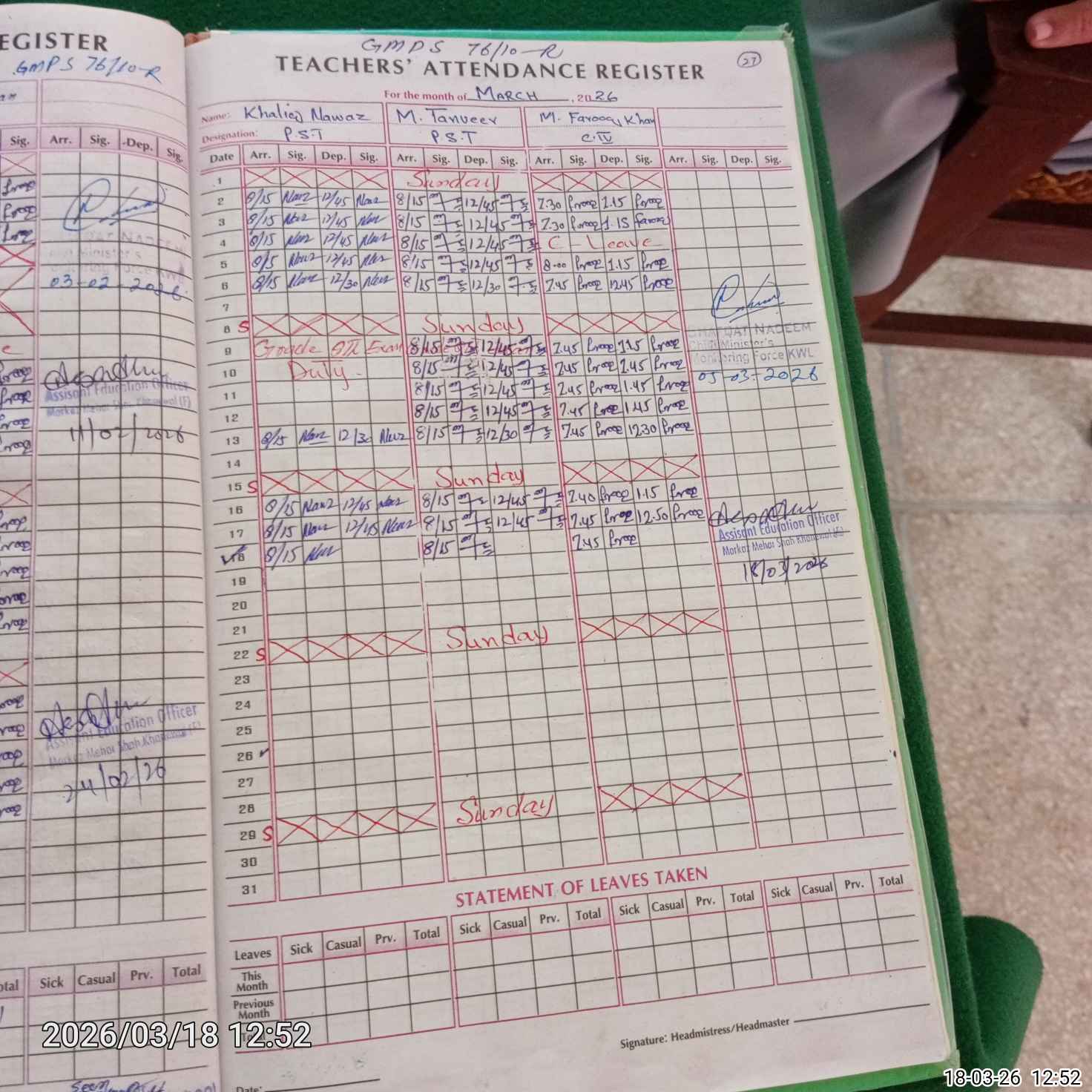 | Name: KH**** NA**** Designation: (School Headmaster's/Headmistress's) PST Phone/Cell Number: 03**** |