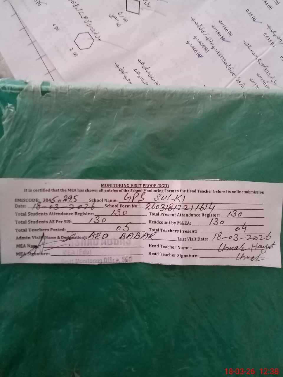 | EMIS Code: 38450295 | Name of School: GPS SULKI | |||