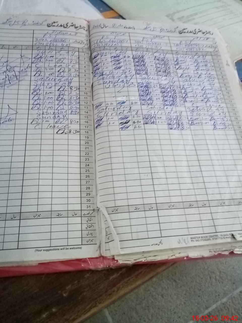 | CNIC | Full Name | Designation | R/C | Absence During Last Calender Month |