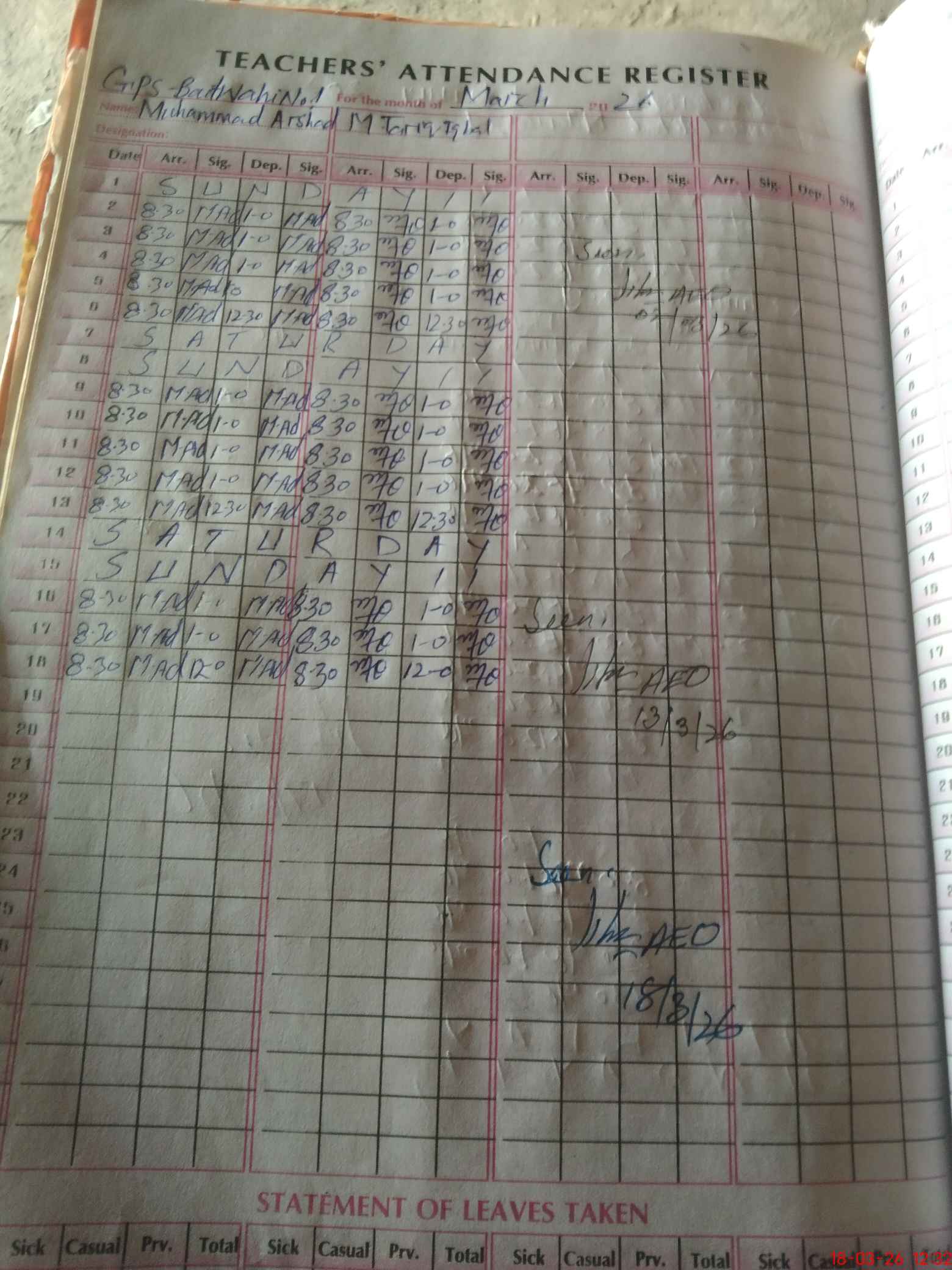 | Name: Mu**** Ar**** Designation: (School Headmaster's/Headmistress's) PST/PTC/JV Phone/Cell Number: 03**** |