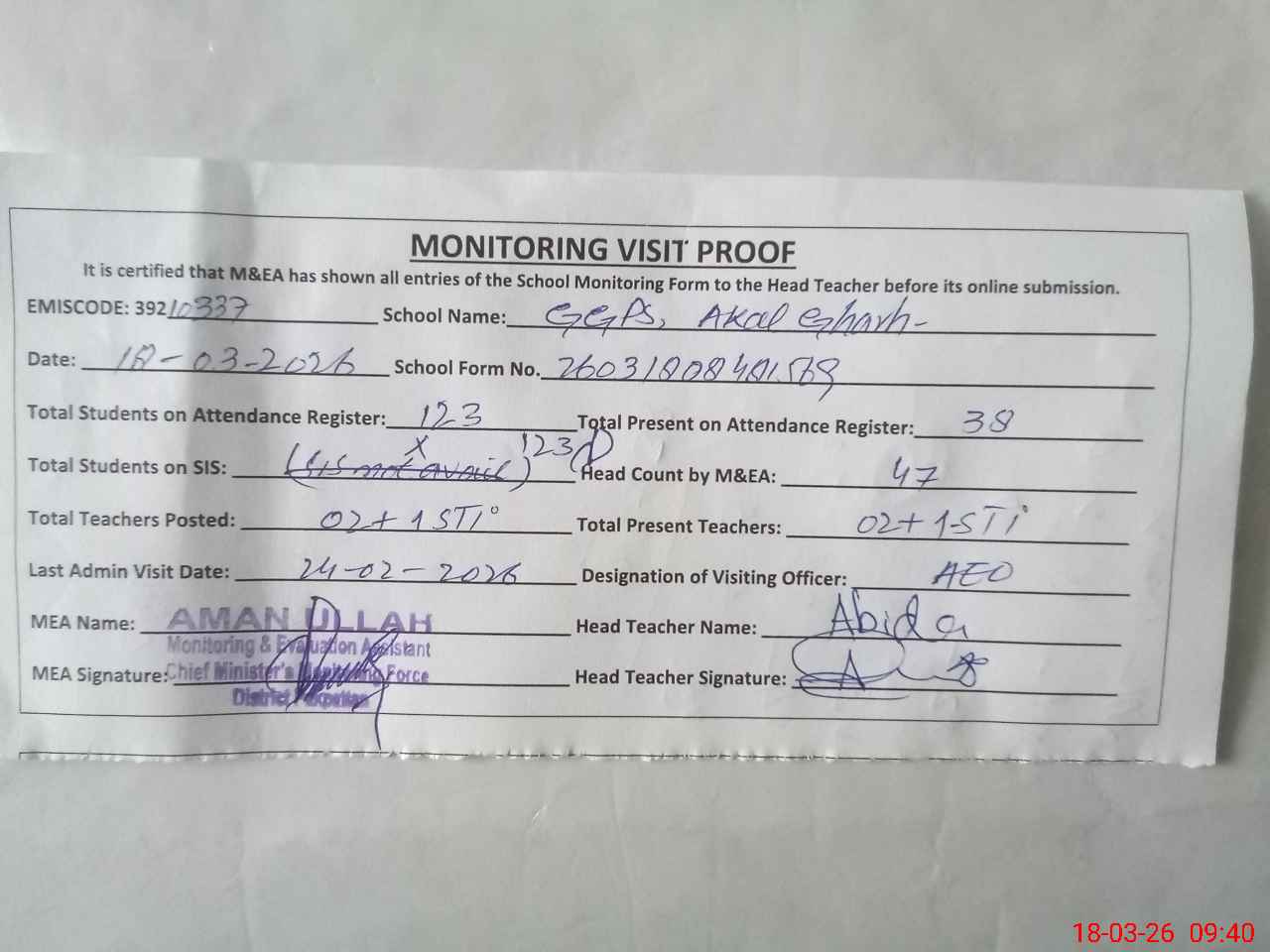 | EMIS Code: 39210337 | Name of School: GGPS AKAL GARH | |||