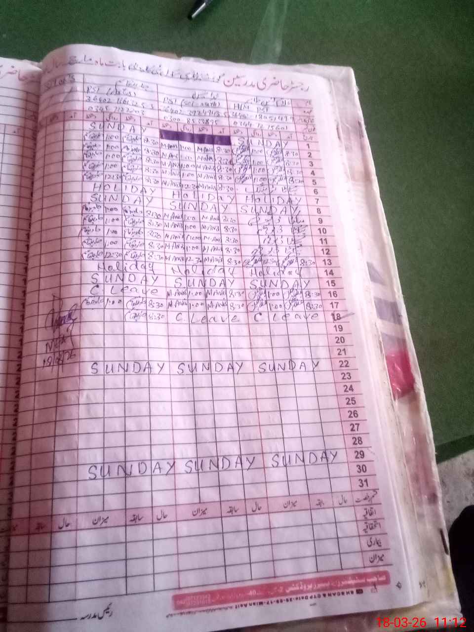 | CNIC | Full Name | Designation | R/C | Absence During Last Calender Month |
