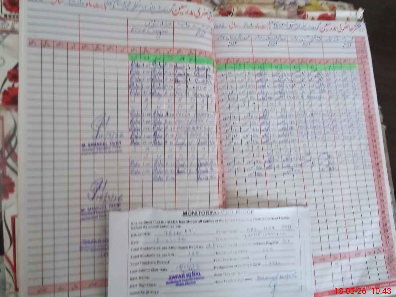 | Attendance Register | Head Teacher | MEA with School | Visit Proof |