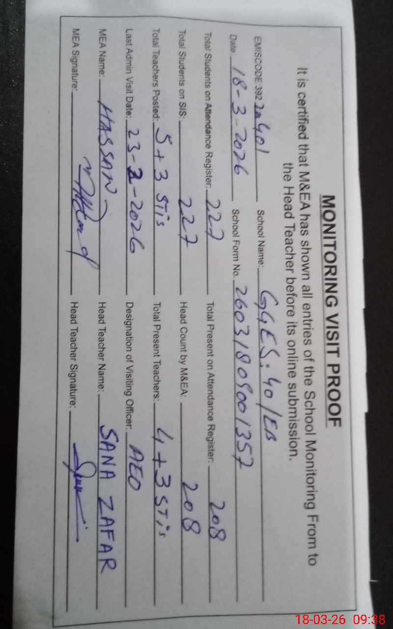 | EMIS Code: 39220401 | Name of School: GGES 40 EB PO 40 EB ARIF WALA | |||