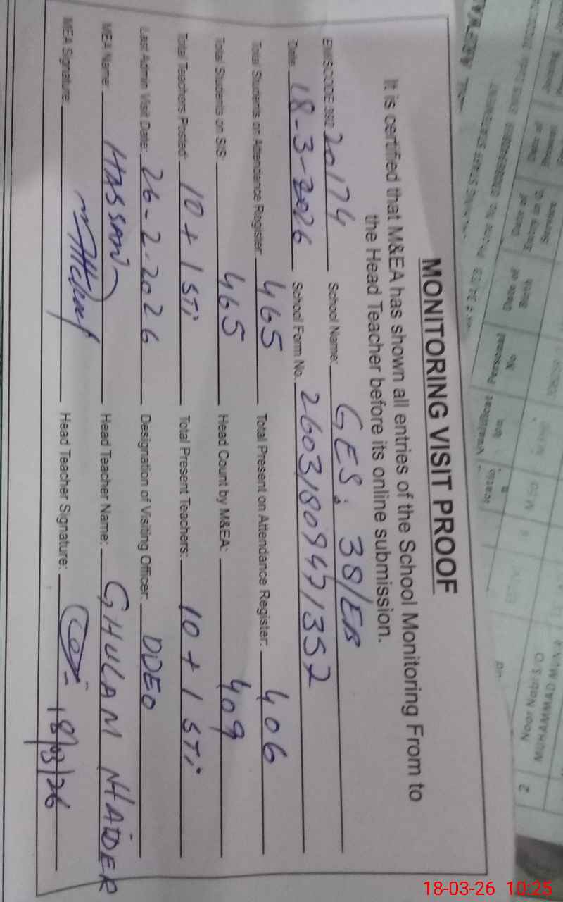 | Certified that this School was Inspected by the Undersigned MEA/DMO Today and the Information Stated Above is as Per Record. | |||||