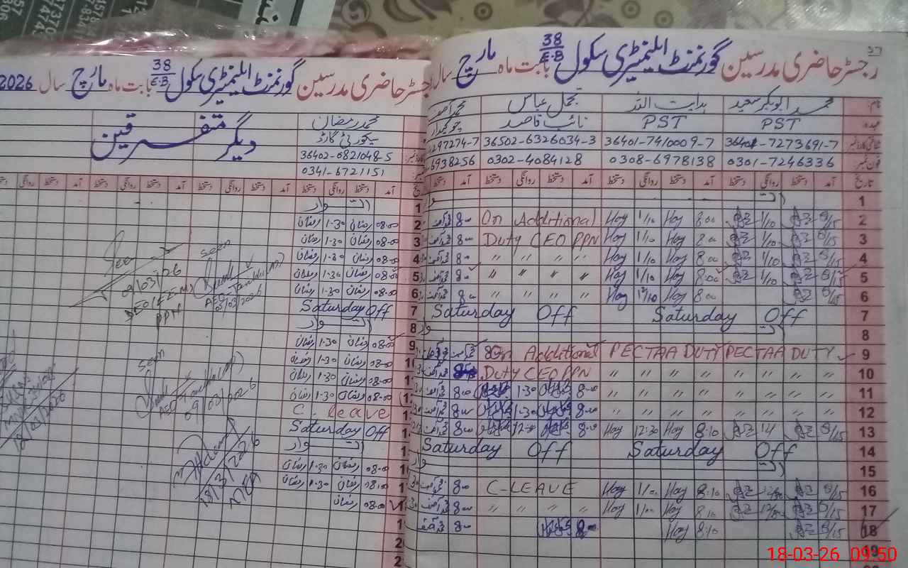 | Name: GH**** HA**** Designation: (School Headmaster's/Headmistress's) E.S.T.(GENERAL) Phone/Cell Number: 03**** |