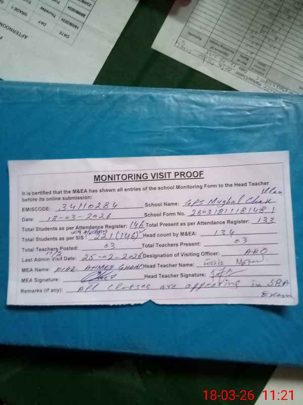 | EMIS Code: 34110284 | Name of School: GPS MUGHAL CHAK KALAN | |||