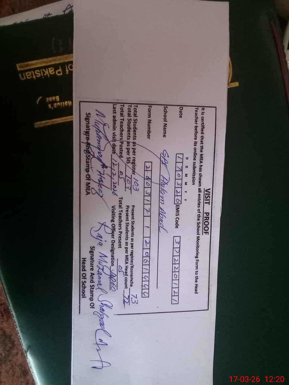 | Certified that this School was Inspected by the Undersigned MEA/DMO Today and the Information Stated Above is as Per Record. | |||||