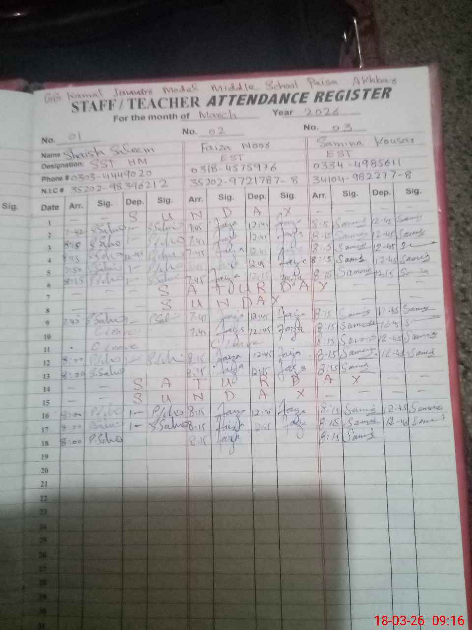 | Name: Sh**** Sa**** Designation: (School Headmaster's/Headmistress's) SST Phone/Cell Number: 03**** |