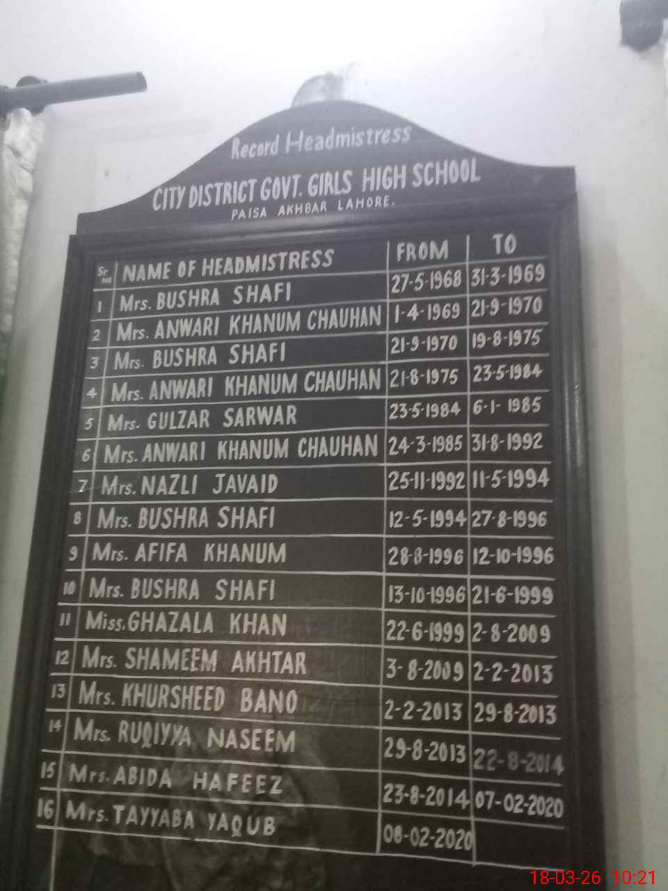 | EMIS Code: 35220562 | Name of School: GGHS PAISA AKHBAR NEW ANARKALI (EX-MCL) | |||