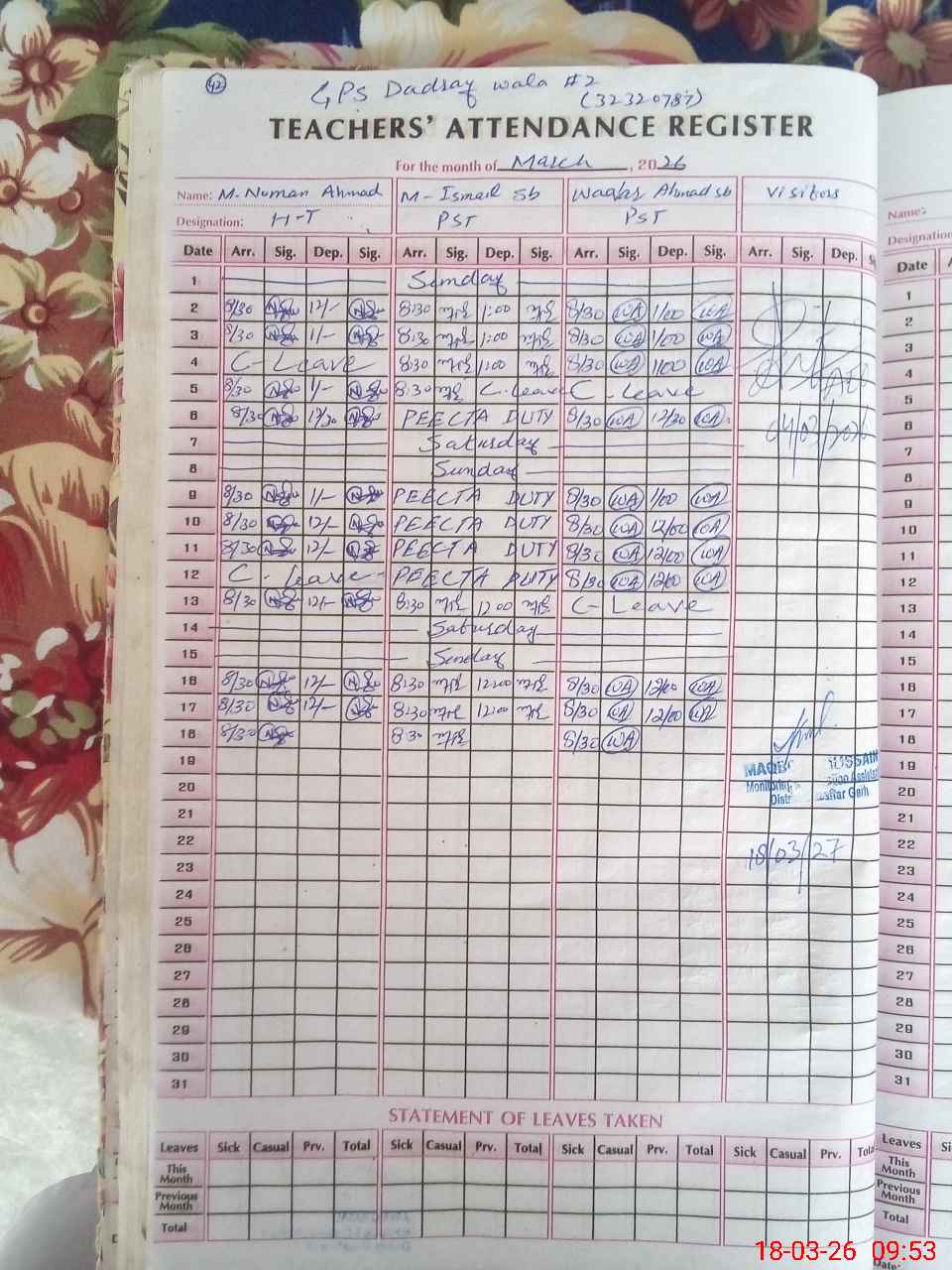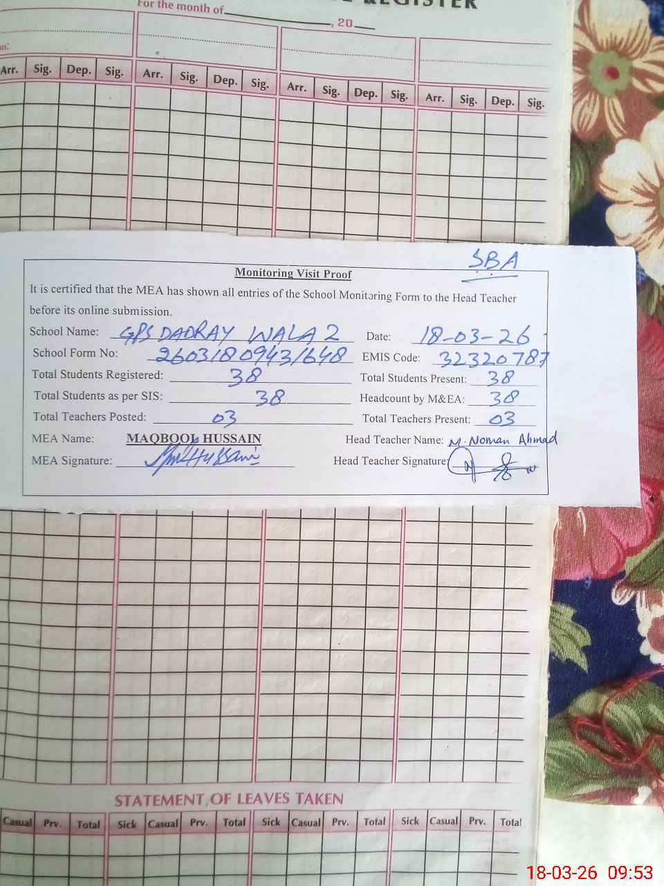 | EMIS Code: 32320787 | Name of School: GPS DADRAY WALA NO. 2 | |||