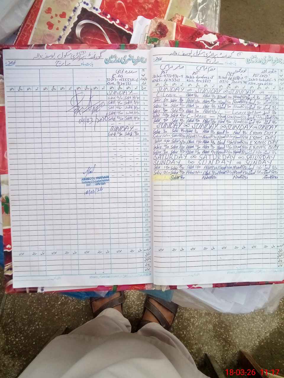 | CNIC | Full Name | Designation | R/C | Absence During Last Calender Month |