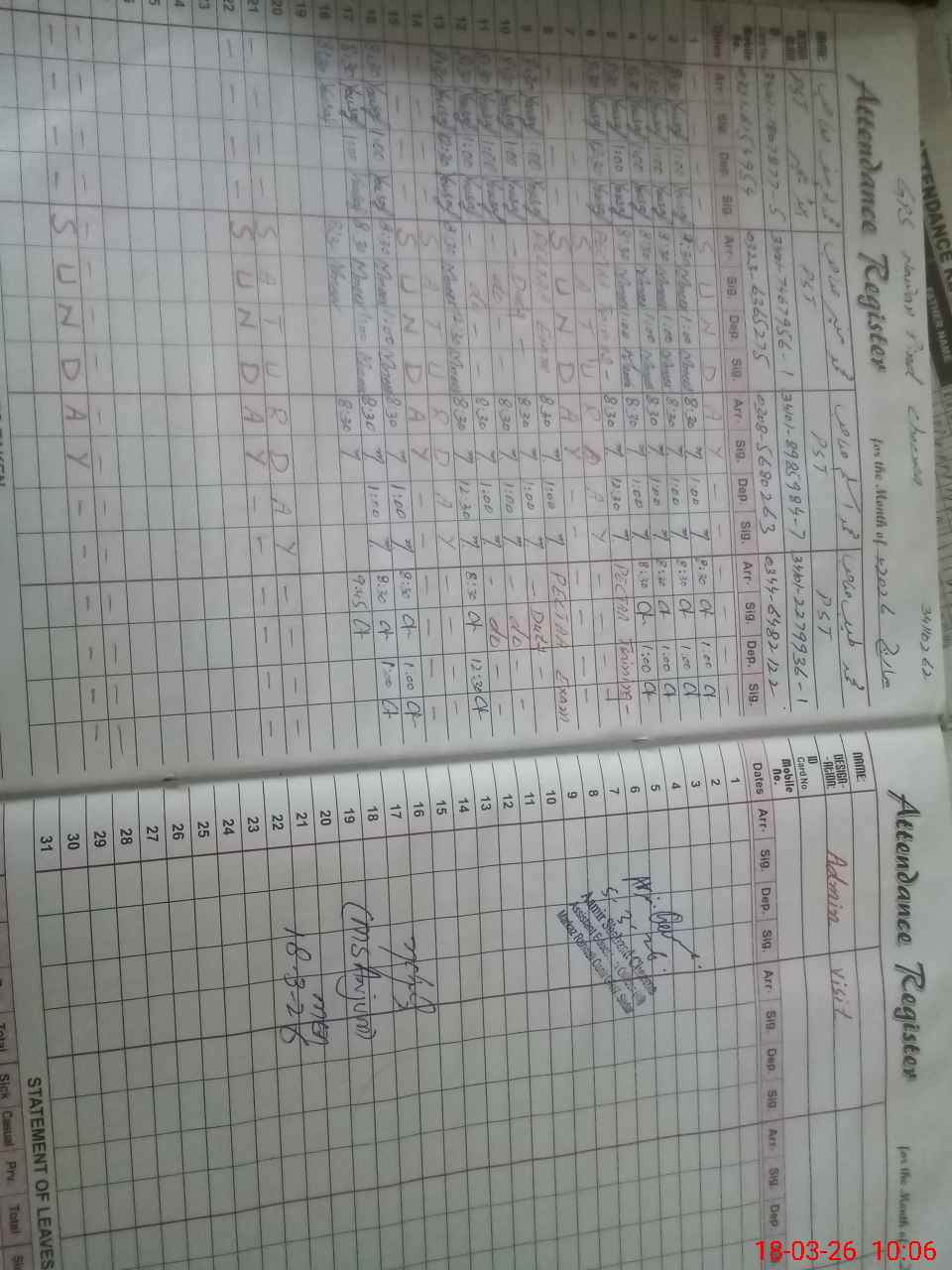 | 34**** | Mu**** Ta**** | PST Science/Maths | Regular | 0 | 0 | 0 | 0 | 0 | 0 | 0 | 0 | 0 | Absent (Un-Authorized) |