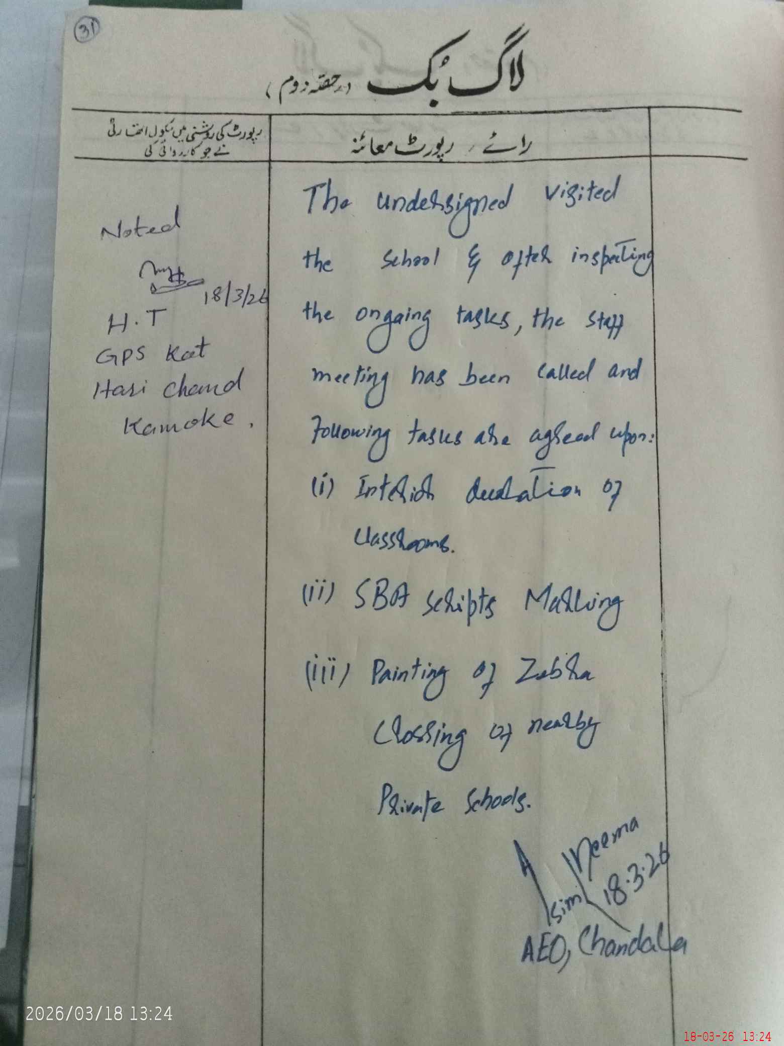 | EMIS Code: 34130087 | Name of School: GPS KOT HARI CHAND | |||