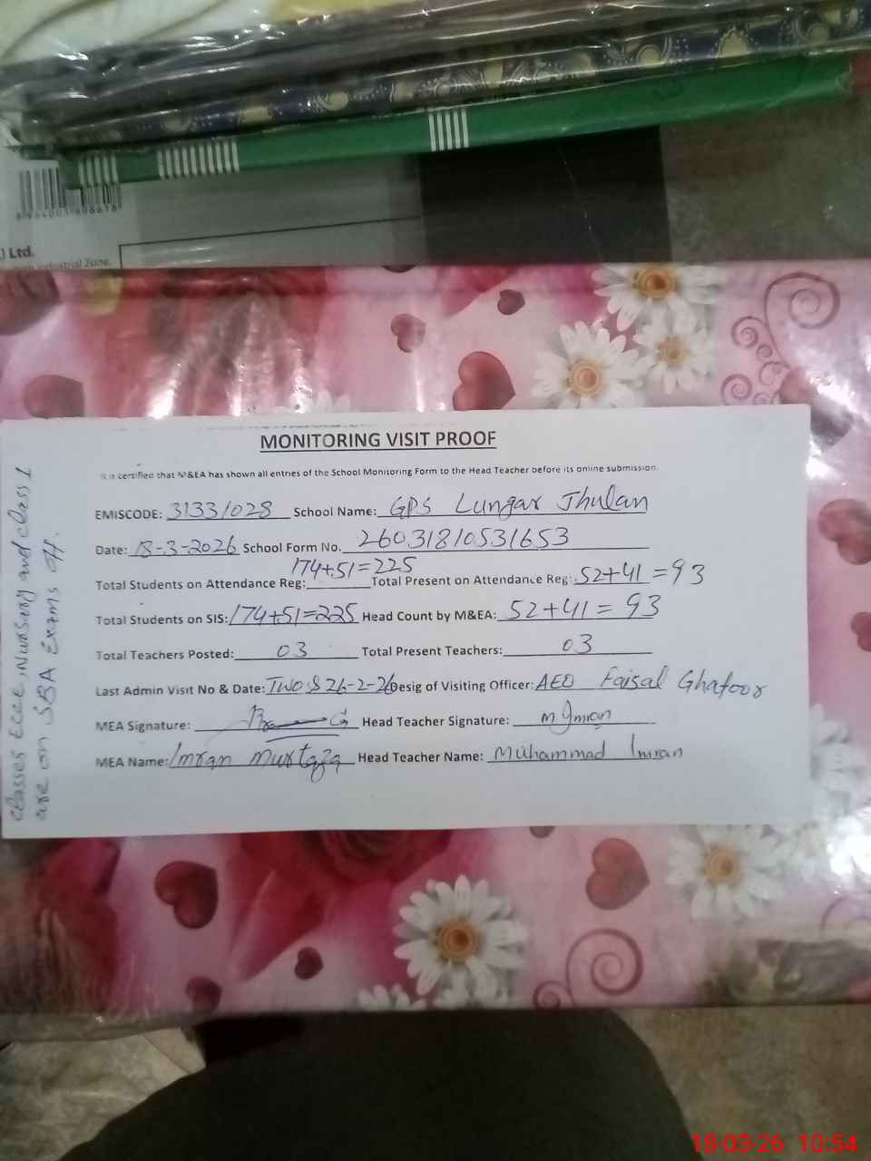 | EMIS Code: 31331028 | Name of School: GPS LUNGAR JHULAN | |||