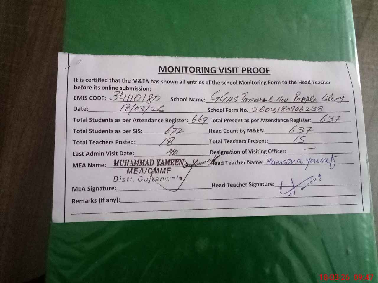 | EMIS Code: 34110180 | Name of School: GGHS TAMER-E-NOU PEOPLE COLONY | |||