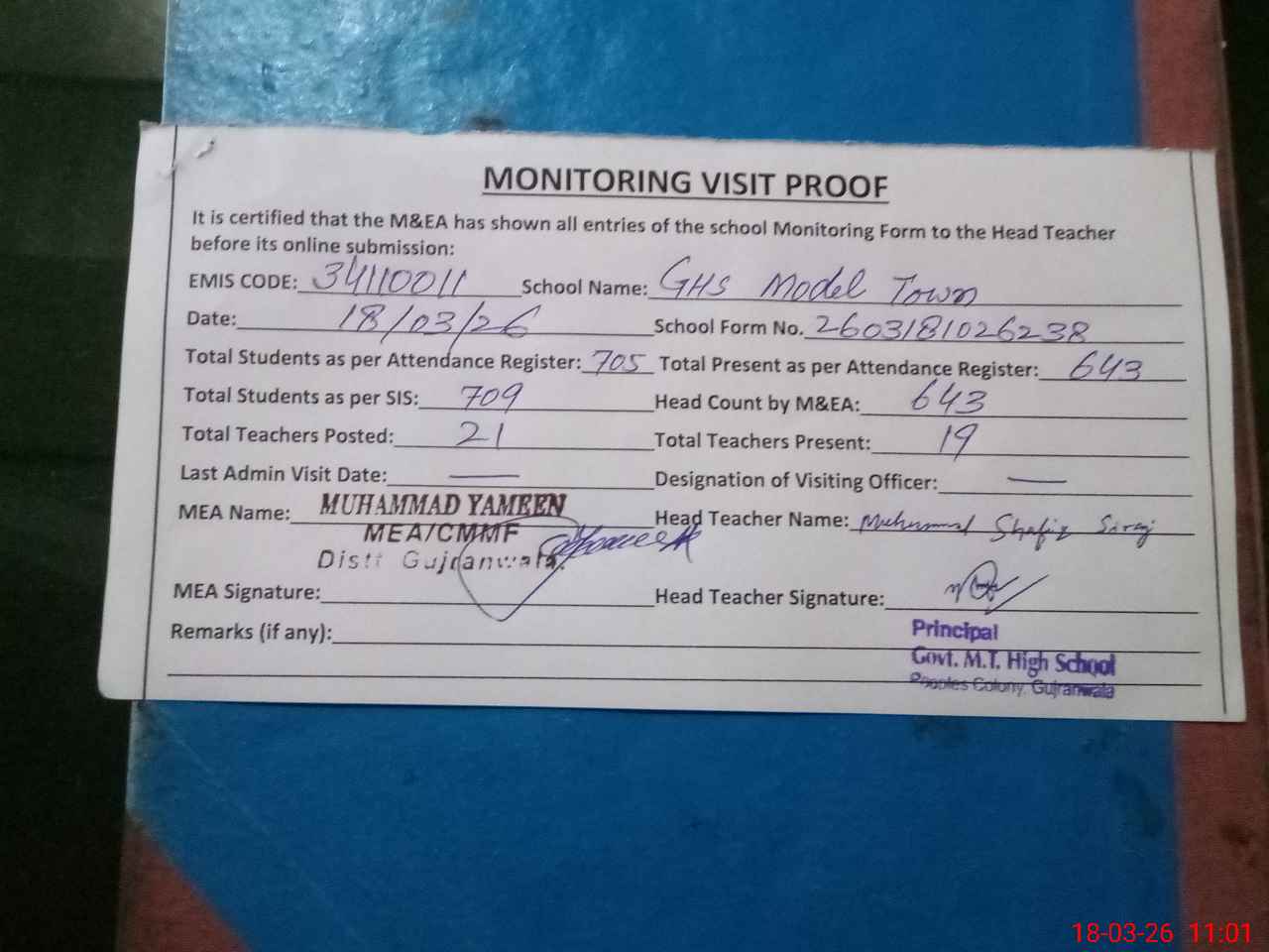 | EMIS Code: 34110011 | Name of School: GHS MODEL TOWN GUJRANWALA | |||
