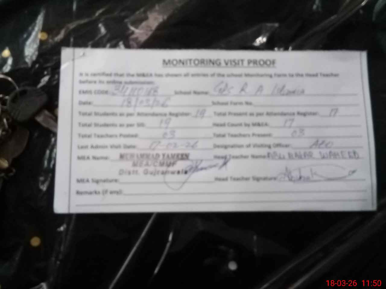 | EMIS Code: 34110168 | Name of School: GPS R A ISLAMIA | |||