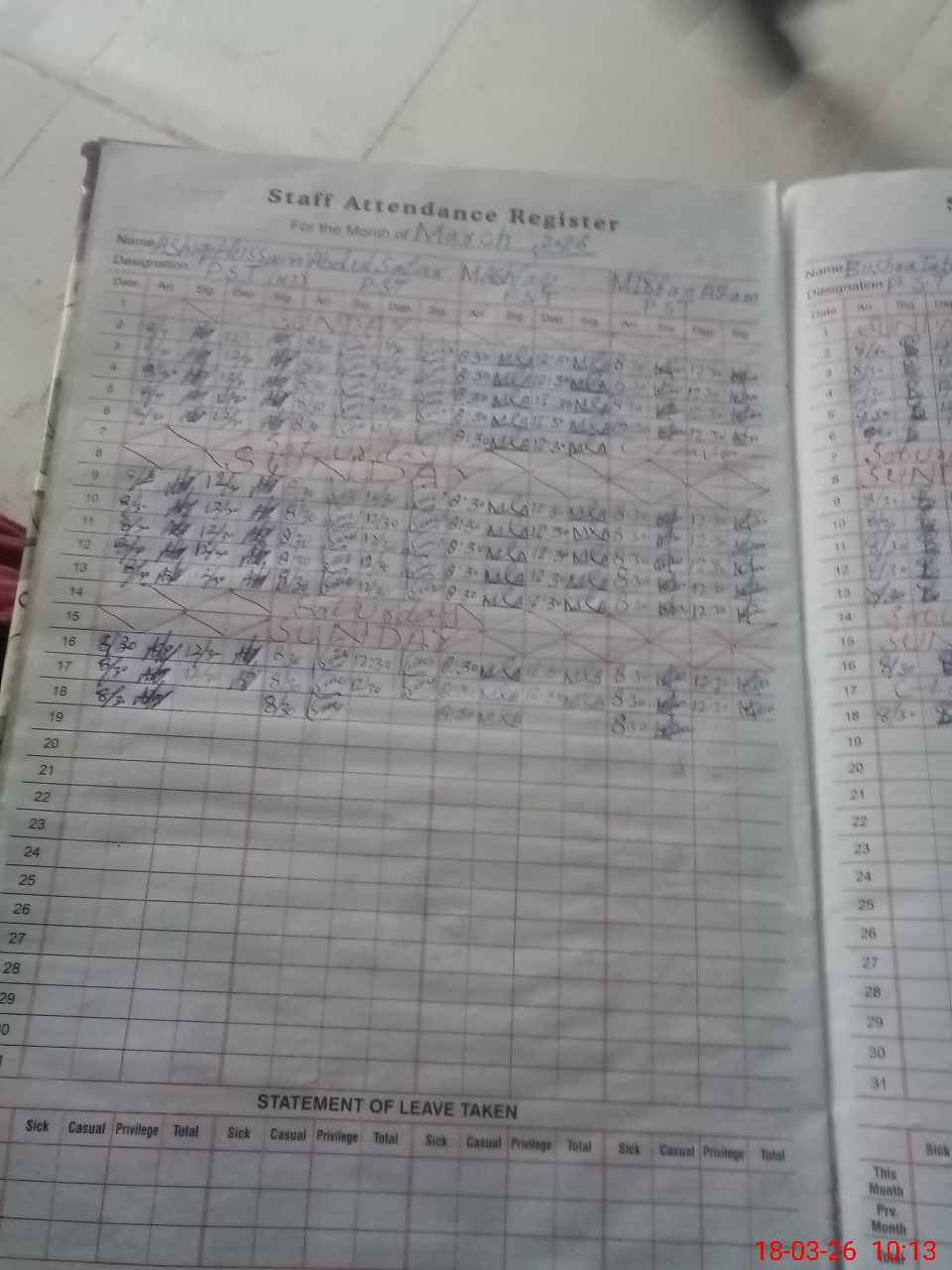 | Name: AS**** HU**** Designation: (School Headmaster's/Headmistress's) PST Phone/Cell Number: 03**** |