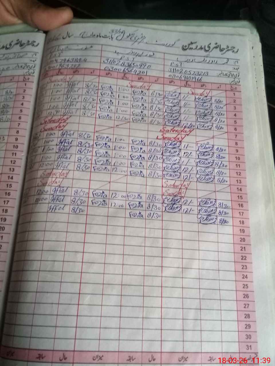 | CNIC | Full Name | Designation | R/C | Absence During Last Calender Month |