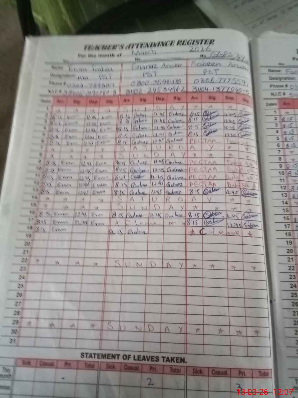 | 31**** | Sa**** An**** | PST Science/Maths | Regular | 0 | 0 | 0 | 0 | 0 | 0 | 0 | 0 | 0 | Casual |