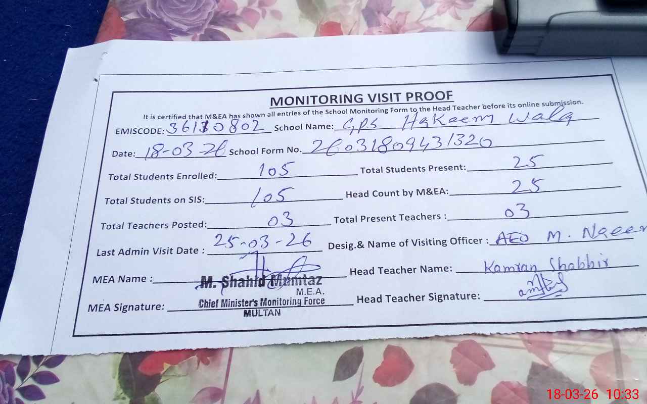 | EMIS Code: 36110802 | Name of School: GPS HAKEEM WALA CHAH KARMU WALA | |||