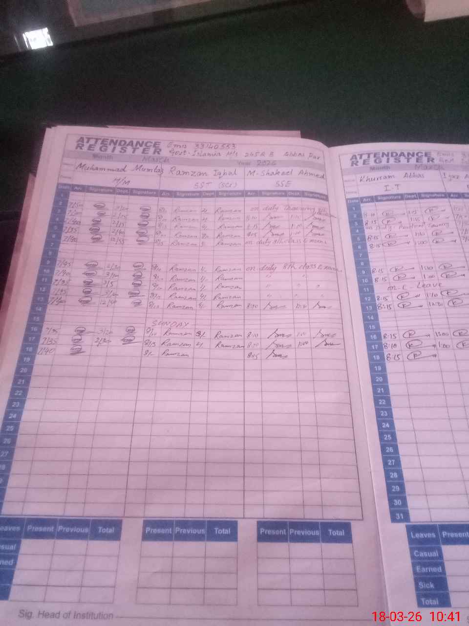 | Name: MU**** MU**** Designation: (School Headmaster's/Headmistress's) SST (Sci ) Incharge Hm Phone/Cell Number: 03**** |