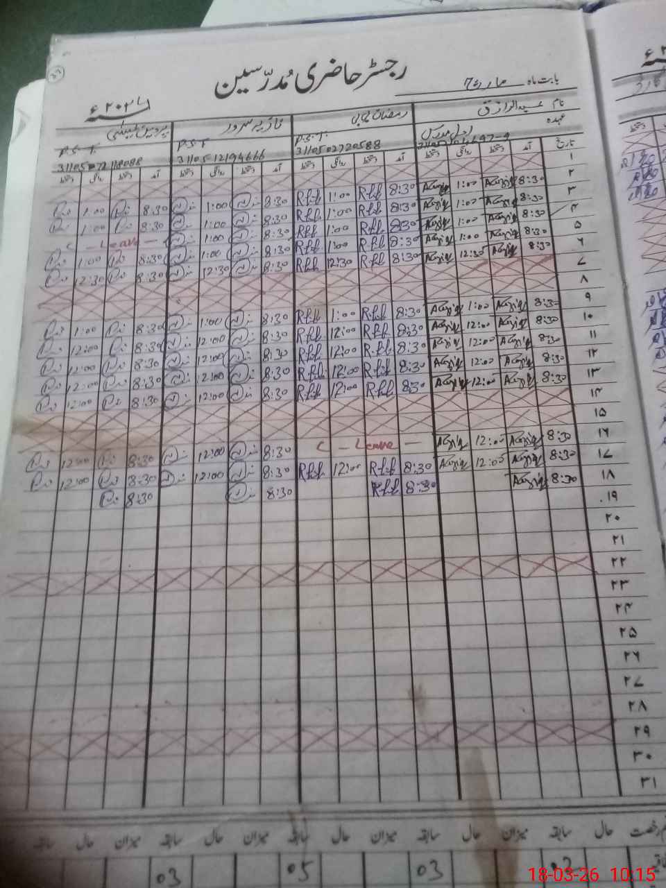 | CNIC | Full Name | Designation | R/C | Absence During Last Calender Month |