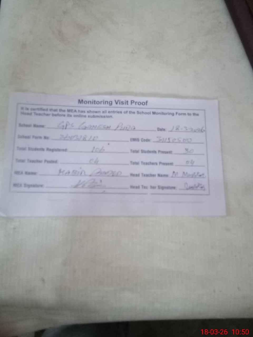 | EMIS Code: 31150500 | Name of School: GPS GANASH PURA MINCHINABAD | |||
