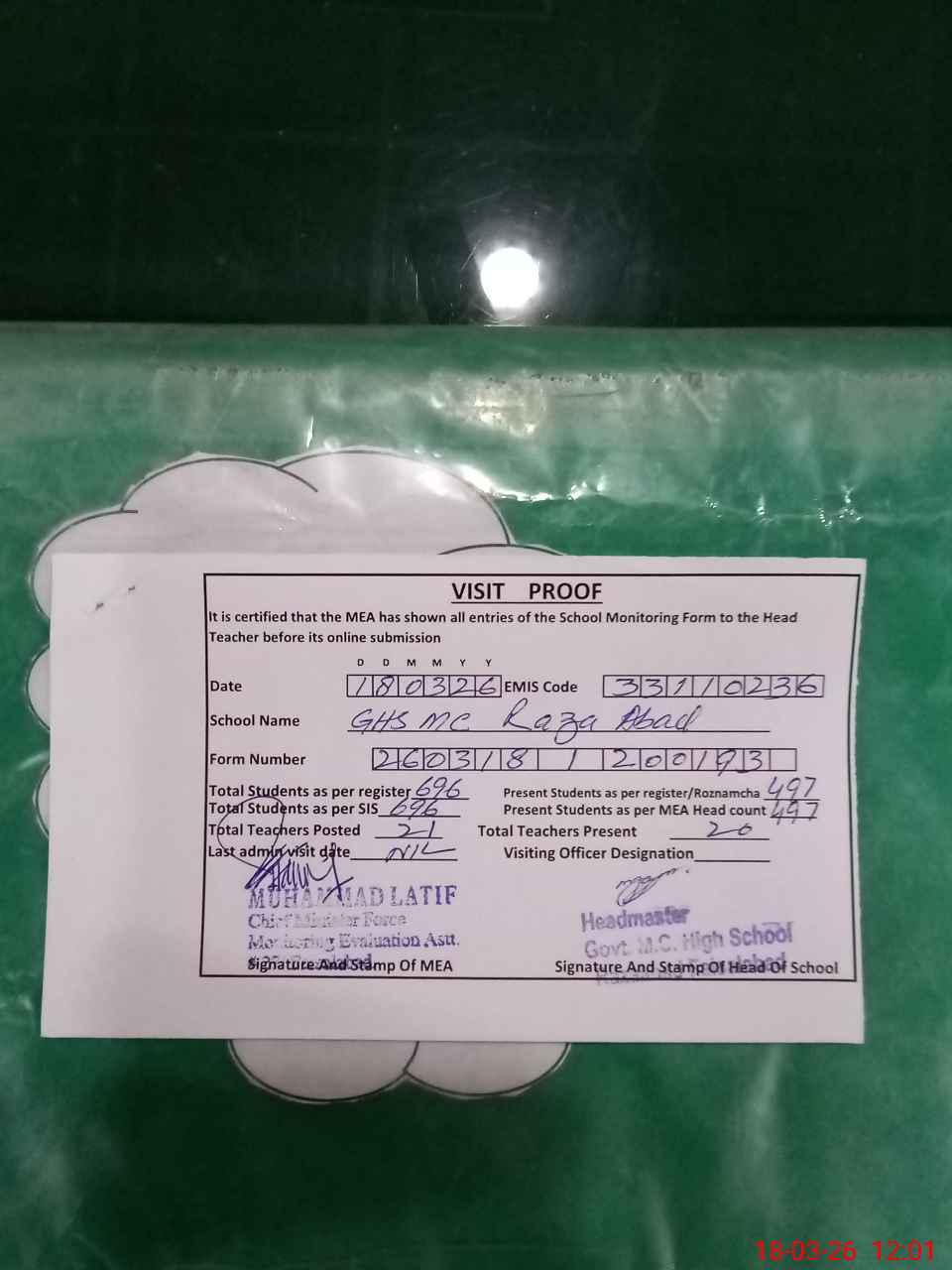 | EMIS Code: 33110236 | Name of School: GHS MC RAZA ABAD FAISALABAD | |||