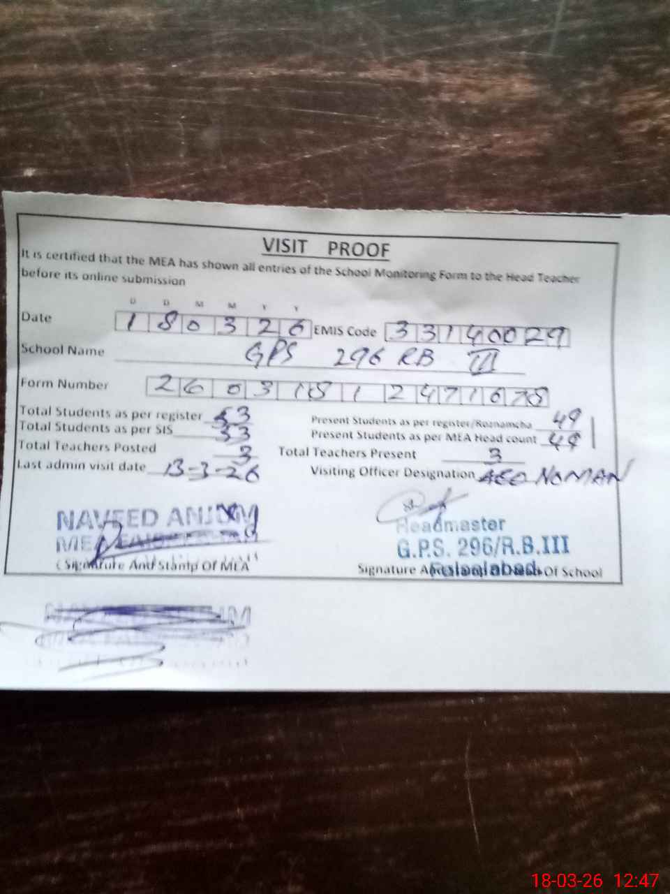 | EMIS Code: 33140029 | Name of School: GPS 296 RB III | |||