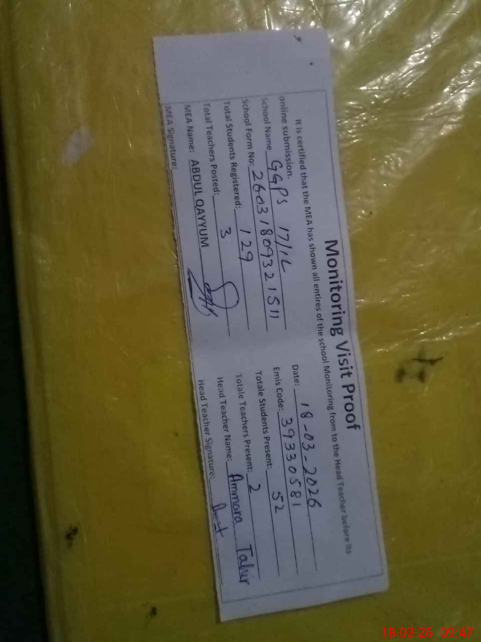 | EMIS Code: 39330581 | Name of School: GGPS 17-1L | |||