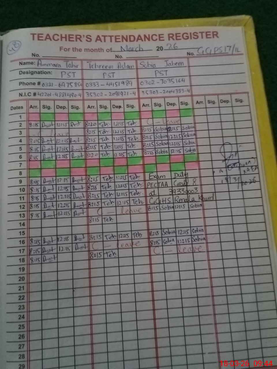 | Name: AM**** TA**** Designation: (School Headmaster's/Headmistress's) PST Phone/Cell Number: 03**** |
