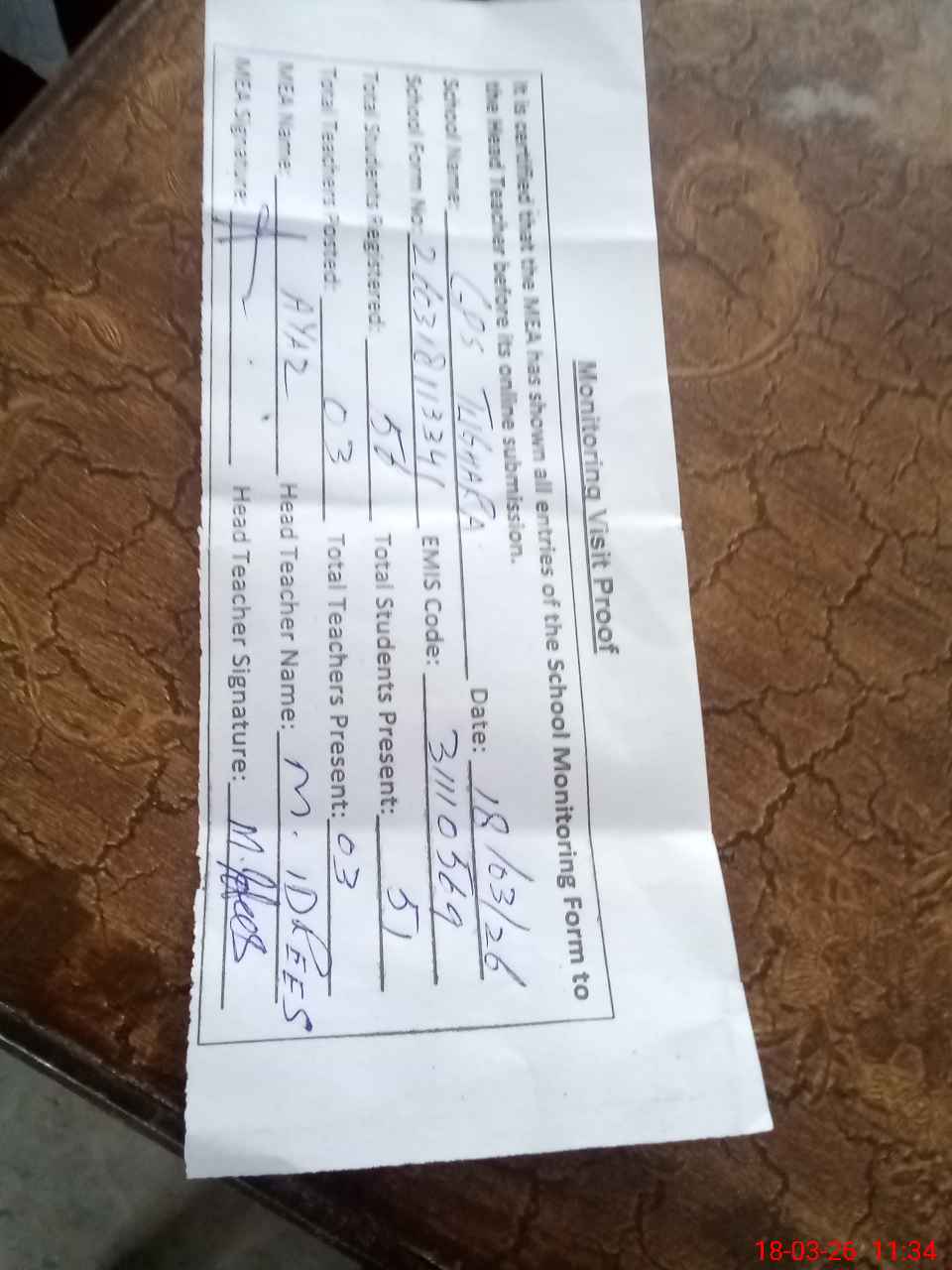 | EMIS Code: 31110569 | Name of School: GPS TOGHRA SHARIF | |||